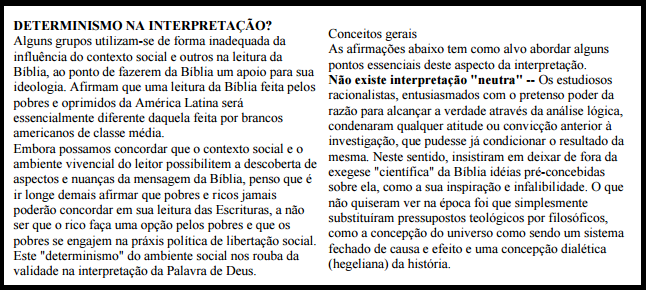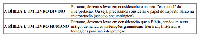 • tem como pressuposto a inspiração e veracidade das Escrituras;