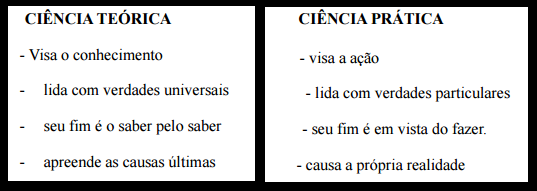A tradição clássica distingue dois tipos de ciências. Ciência teórica e ciência prática.