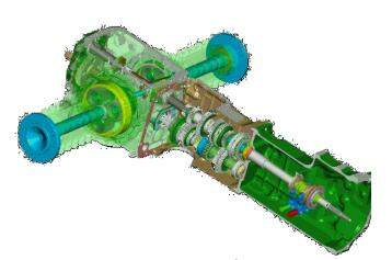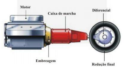 Figura 6. Componentes do sistema de transmissão. Caixa de marcha, embreagem, diferencial e redução final.