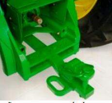O engate de 3 pontos está localizado na parte traseira do trator (Figura 8). Apresenta três pontos para acoplamento de máquinas e implementos ao trator: barra esquerda, barra direita e um ponto central, denominado de 3º ponto. As máquinas e implementos que são acopladas dessa maneira ao trator são denominados: montadas ou de engate de três pontos.