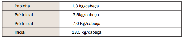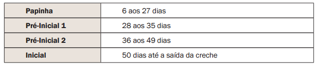 O programa nutricional da creche também pode ser estabelecido segundo as quantidades de ração/fase: