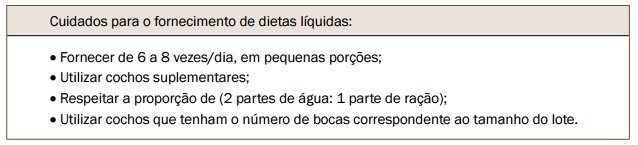 Dentro dos objetivos cruciais ao setor de creche, nas primeiras semanas, está a maximização do consumo de ração e água. Assim, o uso de rações pré-iniciais molhadas (papinha) no período pós-desmame é uma forma simples de aumentar o consumo nessa fase. As rações molhadas são mais atrativas e auxiliam na manutenção da integridade da mucosa intestinal (vilosidades), melhorando, assim, a digestão e absorção dos nutrientes.