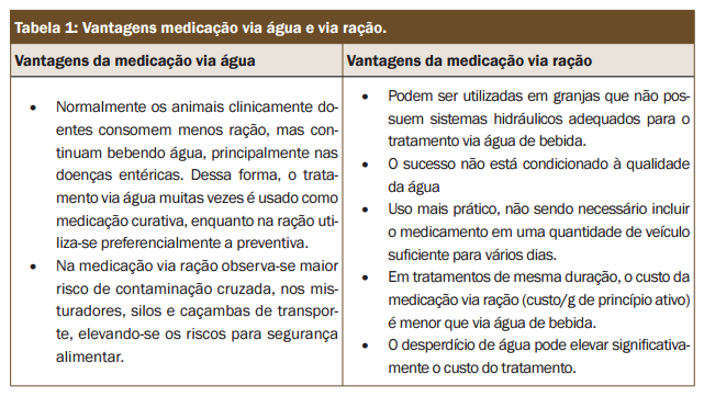 Medicação via água x medicação via ração
