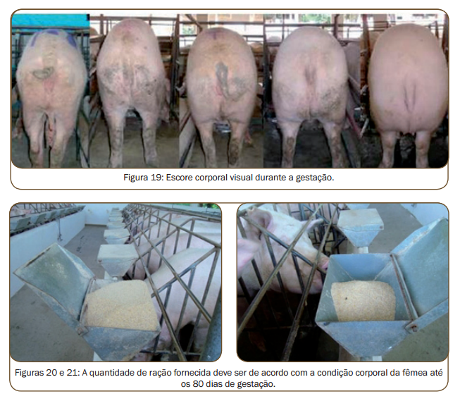 Desde o primeiro dia de alojamento na maternidade deve ser fornecida ração do tipo lactação nas mesmas quantidades que vinham sendo dadas no final da gestação, pois o crescimento dos fetos nessa fase final é bastante significativo.