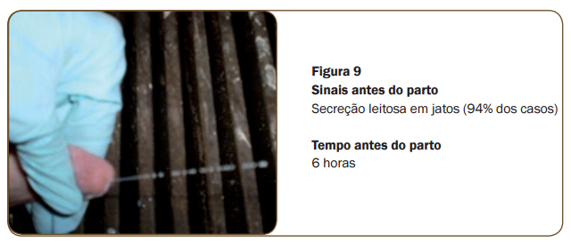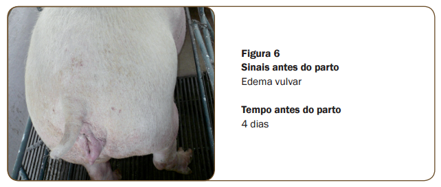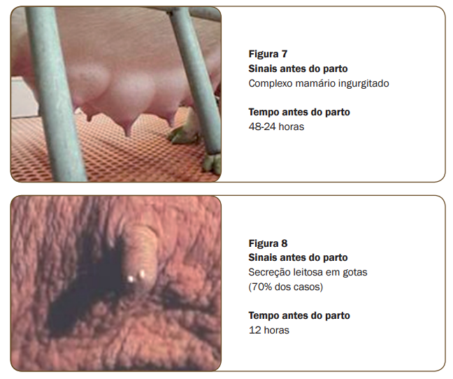 Para que o acompanhamento ao parto seja efetivo, desde o início é preciso conhecer os sinais que antecedem a expulsão do primeiro leitão. O quadro abaixo resume esses sinais (fi gura 6 a 9). Principais sinais associados ao parto e momento em que eles ocorrem.