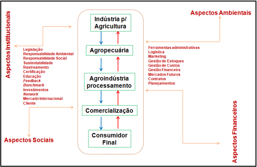 As complexas cadeias dos agronegócios são compostas por empresas fornecedoras de insumos, dos produtores, das indústrias processadoras e seus insumos (embalagens, aditivos), dos distribuidores (atacadistas, varejistas, restaurantes) e prestadores de serviços (transportadoras, bancos, certificadoras, estocadores, financeiras, operadores logísticos) visando a satisfazer o consumidor final. Elas podem ser analisadas de uma escala macroeconômica (agregados econômicos) para uma escala microeconômica (unidades da base da economia), são consideradas como um sistema organizado de processo de fabricação e operações, ou seja, cada operação só poderá ser executada quando a anterior estiver sendo concluída.
