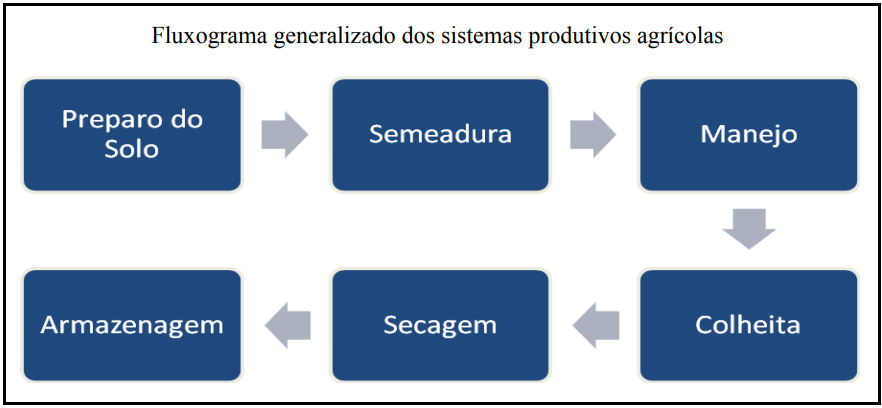 Respeitanto as peculiaridades de cada sistema agronômico de produção, pretende-se apresentar algumas características comuns de cultivo para familiarizar o leitor da ordem em que os eventos agrícolas ocorrem. Primeiramente, deve-se ter em mente que as etapas básicas das atividades agrícolas, em geral, se referem ao preparo do solo, plantio, manejo da cultura, colheita e pós colheita (secagem ou acondicionamento e armazenamento), até a comercialização das commodities.