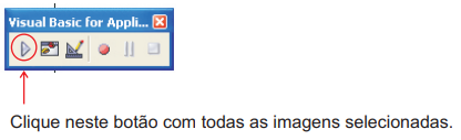 Após terminar o seu layout, selecione todos os objetos, arraste o cursor até a ferramenta “Visual Basic For Applications”, clique no primeiro botão “Executar uma macro do VBA”.