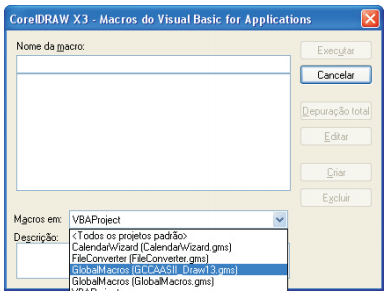 Na tela do “VB”, selecione a opção “GlobalMacro (GCCAASII_Draw13.gsm) e Clique em “Executar”