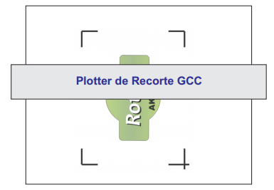 No processo de recorte da GCC utilizando o Corel Draw, a plotter recorta utilizando o formato “Paisagem”, e não ha como configura-lá para retrato, sendo assim, para o corte de contorno, é necessário virar 90º a mídia já impressa, para posicionar corretamente o material na plotter.