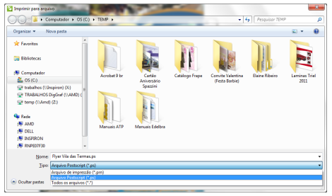 13. Agora feche a ‘Visualização de impressão’ e clique no botão ‘Imprimir’. Aparecerá uma tela onde deverá ser informado onde o arquivo será salvo. Selecione a opção do tipo de arquivo para ‘Arquivo Postscript (*.ps)’, de um nome adequado ao seu arquivo e clique em ‘Salvar’.