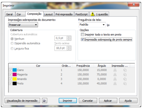 A tela a seguir ilustra como seu aplicativo pode ser configurado para criar arquivos com maior fidelidade de cores entre o que você vê em seu computador e o resultado final da impressão.
