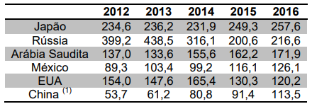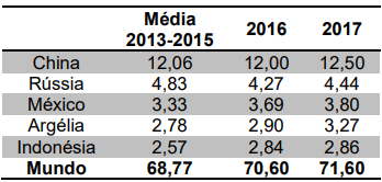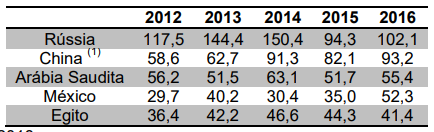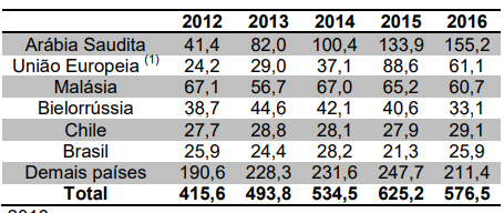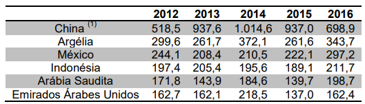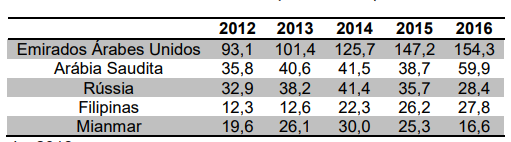 Os 5 principais importadores foram responsáveis por metade das compras internacionais em 2016, com destaque para os Emirados Árabes Unidos.