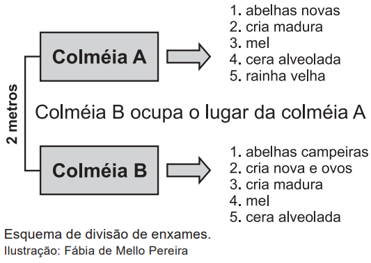 Esquema de divisão de enxames. Ilustração: Fábia de Mello Pereira