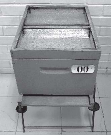 Do tamanho de um quadro de ninho ou melgueira, esse alimentador é usado dentro da colmeia, em substituição a um dos quadros. Para evitar que as abelhas morram afogadas no alimento líquido, esse modelo deve ter a parte interna rugosa para que as abelhas possam subir e sair do alimentador