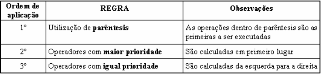 2. Dispomos de um conjunto de operadores e respectivas regras de prioridade