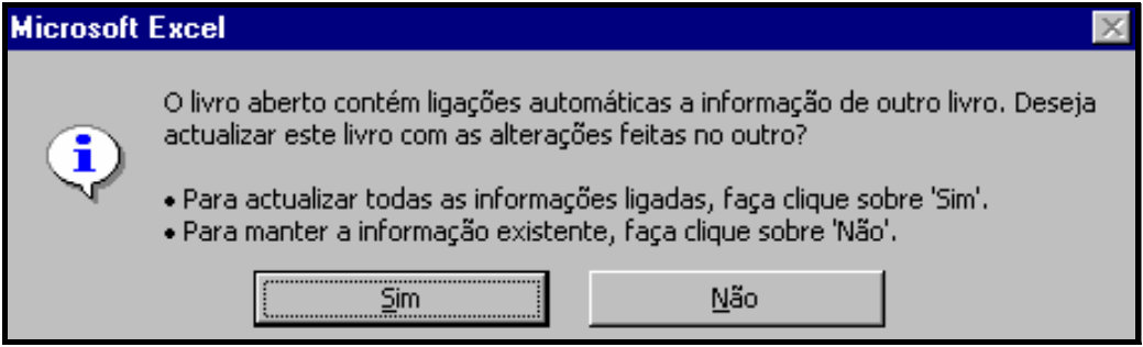 O Excel detecta ao abrir um livro quando este contém ligações externas. Nesse caso pergunta se se pretende atualizar essas ligações, ou seja, resolver as duas questões anteriores.