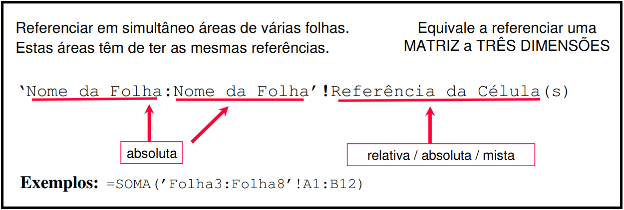 - Esta(s) célula(s) estão numa folha de cálculo ou em várias folhas de cálculo (3D)