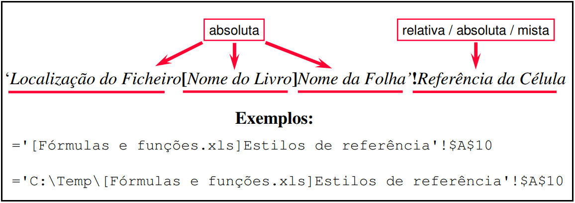 - Estas folhas de cálculo por sua vez podem pertencer ao mesmo livro de trabalho da fórmula ou a um outro livro de trabalho que não contenha a fórmula (externa)