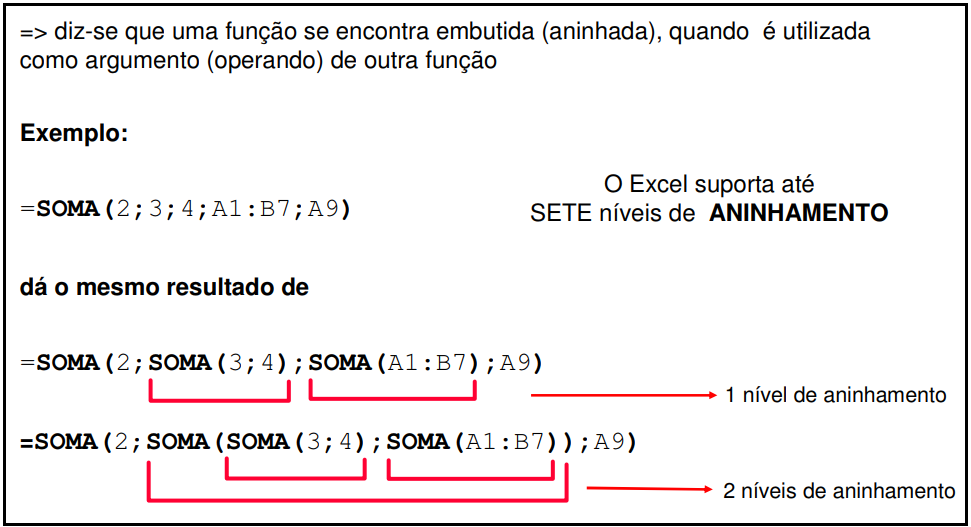 Funções Pré-Definidas: Sintaxe da função; Funções aninhadas ou embricadas; O Assistente de Funções