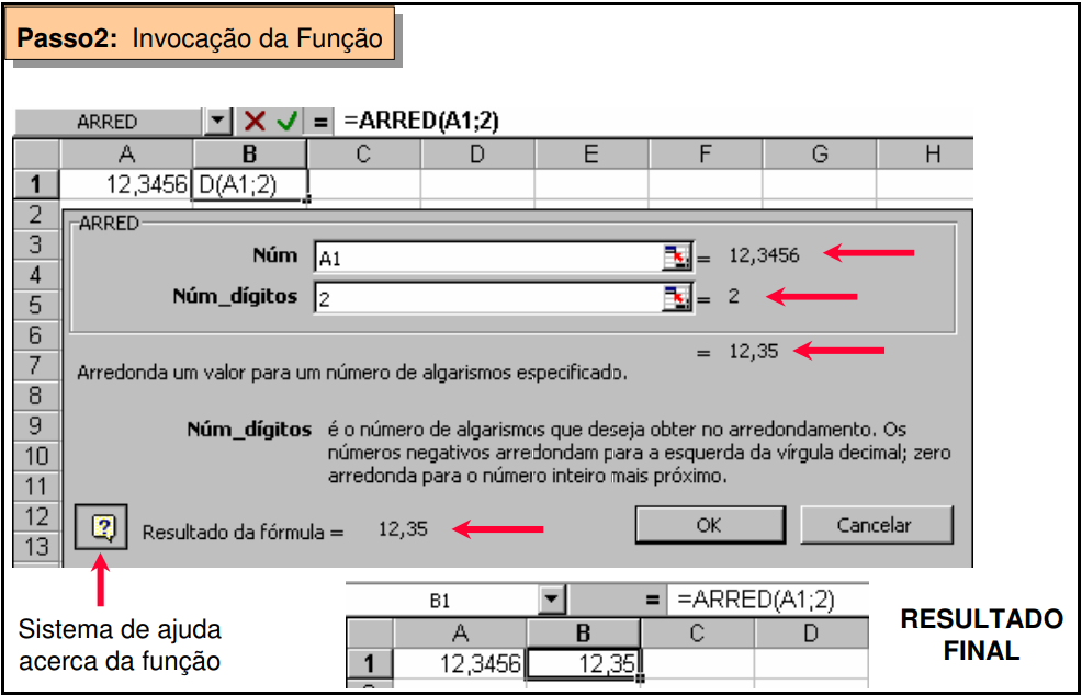 Exemplo: em B1 construir a fórmula =ARRED(A1;2