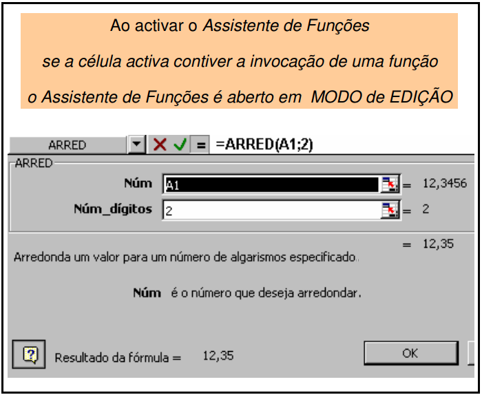- Ou através do Assistente de Funções que dá acesso à listagem das funções, ajudando também a construir a invocação da função.