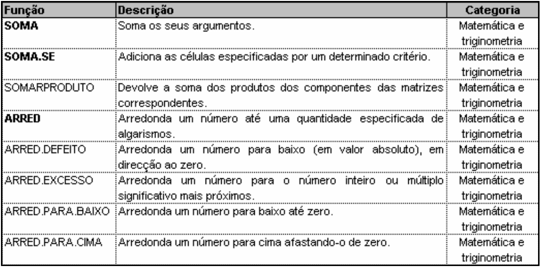 Matemática, Lógica, Data e Hora, Estatística, Texto, Financeiras, Informação, Consulta e Referência, Base de Dados