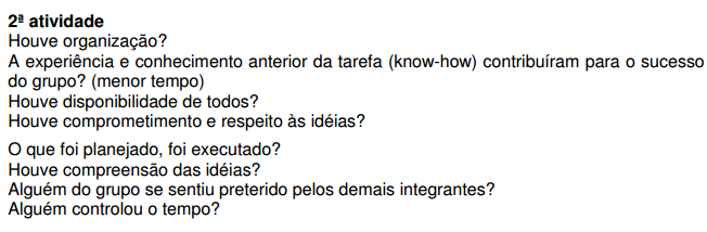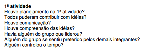 Desenrolar: o facilitador pede aos participantes para preencher o formulário com as questões abaixo.
