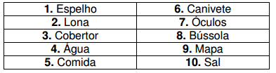 10. Mapa - Desnecessário, uma vez que todos deverão permanecer juntos aguardando o socorro.