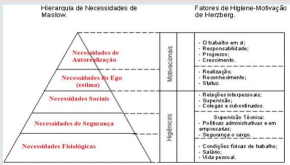 Chiavenato, diz que Herzberg propõe a teoria dos dois fatores que consiste em fatores higiênicos e motivacionais e afirma que os fatores higiênicos consistem entre outros elementos, nas condições físicas de trabalho, relacionamento entre a empresa e os funcionários e salário. E quando os fatores higiênicos são precários, eles provocam insatisfação dos empregados. Já os fatores motivacionais estão relacionados com o conteúdo do cargo e com a natureza das tarefas que a pessoa executa.