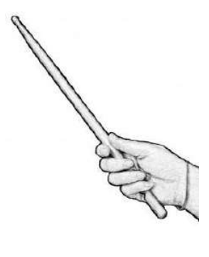Para executar a Matched Grip, vamos configurar a mão com as indicações que a seguir. A primeira é a pinça. A pinça fara o movimento de ida e volta da baqueta e dará sustentação e firmeza na hora de tocar. É a pinça que segura a baqueta na posição correta. O dedo 2 (indicador) deve ser colocado em volta da baqueta, dando a sustentação e o dedo 1 (polegar), fará a pressão para que a baqueta não escape. A configuração de pinça é importantíssima, pois, é a partir dela que você conseguirá executar todos os movimentos rápidos sem sobrecarregar os braços e os punhos.