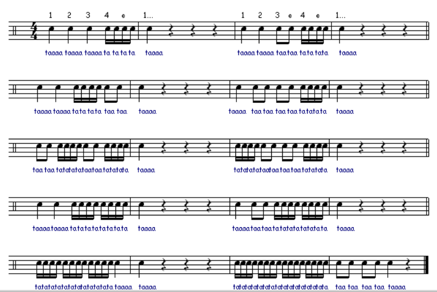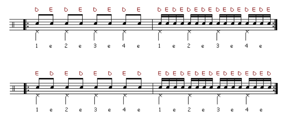 Exercício de aplicação de virada em semicolcheias com batidas.