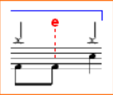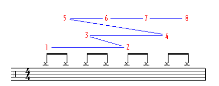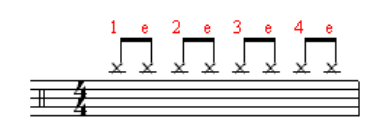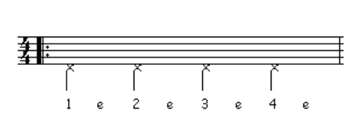 2. Normalmente, é escrita a cabeça da nota com um "X", quando a peça da bateria é referente a de metal, tais como pratos e aros.