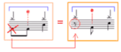 Na figura a abaixo, note que a linha curva sobre a cabeça da nota (ligadura), ela mostra que a nota deve ser executada como apenas uma só. Este é o resultado que o ponto de aumento vai dar a nota, é uma forma mais simples de escrita e de leitura.