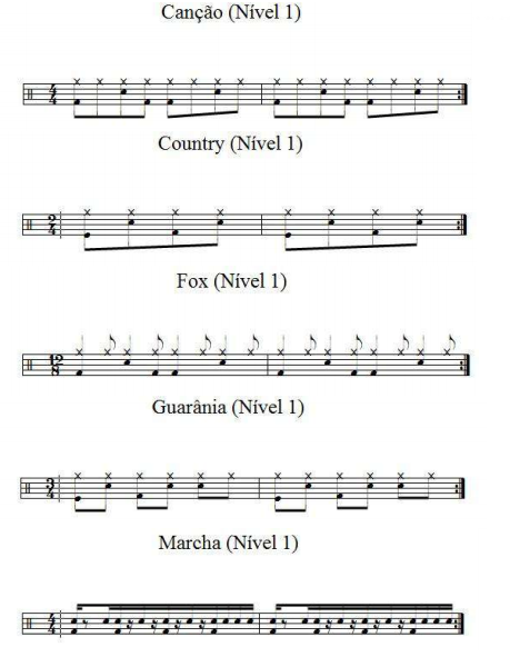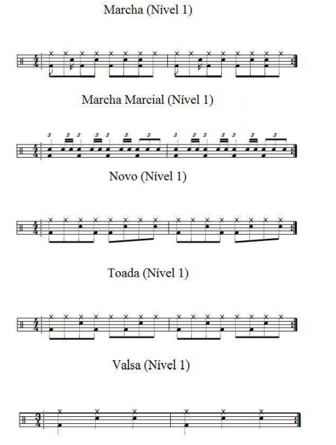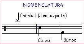 Notas são: DÓ, Ré, Mi, Fá...Caixa e bumbo em COLCHEIA