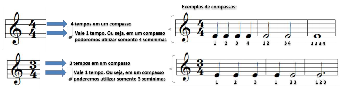 Essas séries, ou seja, os compassos podem ser de: 2 tempos, 3 tempos, 4 tempos, 5tempos, 7 tempos, 11 tempos, etc., mas os mais usados são os de: