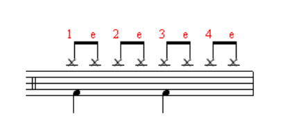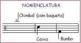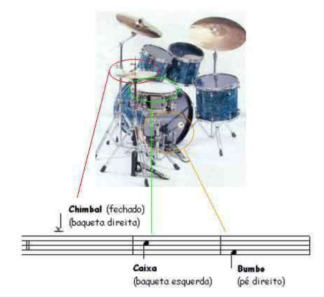 Abaixo, repare na colocação das semínimas do chimbal no pentagrama.