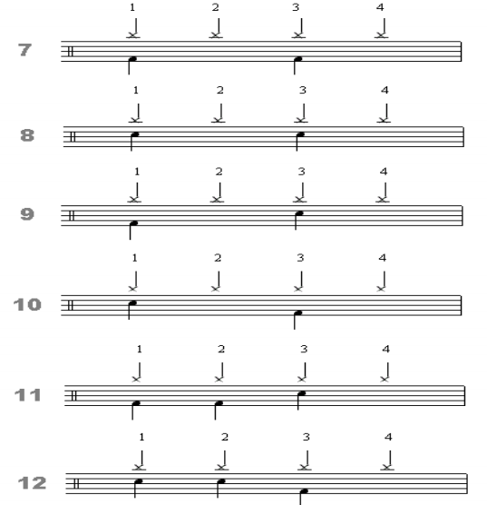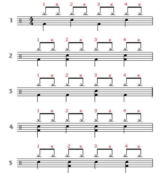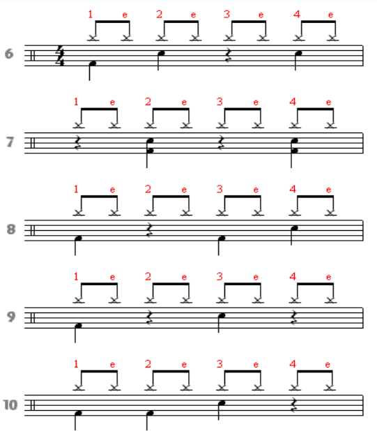 Neste capitulo daremos continuidade aos estudos das batidas em colcheias, mas agora vamos aplicar as pausas no bumbo, antes de dar continuidade lembre-se de analisar bem o exercício, entenda a ordem e o posicionamento de cada componente da bateria.