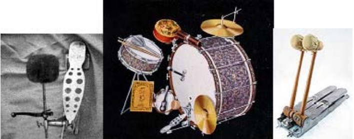 Protótipos de pedal para o bumbo foram sendo desenvolvidos já no início dos anos 1900 e ao final da primeira década William Ludwig comercializou um pedal dobrável com molas que faziam voltar o batedor e que possuía um dispositivo preso à haste que permitia percutir um prato acoplado ao bumbo. Outro tipo era o pedal frisco, uma espécie de pedal duplo com batedores que permitiam tocar bumbo e prato ou somente o bumbo.
