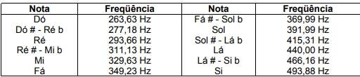 Freqüência significa o quanto alguma coisa se repete e se essa repetição é maior ou menor. Por exemplo, se alguém perguntar com que freqüência você faz aniversário, a resposta será uma vez ao ano. Se a pergunta é com que freqüência você vai à escola, ou ao serviço, a resposta pode ser cinco vezes (dias) por semana. Nós vimos que o som é produzido por vibrações e que para podermos trabalhar esse som, precisamos transformá-lo em eletricidade, que chamamos de sinal. Essas vibrações e as conseqüentes oscilações do sinal podem ser mais rápidas, ou mais lentas. Quanto mais rápidas, maior será a freqüência e mais agudo o som. Quanto mais lentas, menor será a freqüência, e mais grave o som. Em áudio, e na eletrônica, medimos a freqüência em quantidades de oscilações por segundo. A unidade da freqüência é o Hertz (pronuncia-se rértiz), cujo símbolo é Hz. O múltiplo mais usado em áudio é o kilo (k). 1 kHz é igual a 1000Hz. O ouvido humano, tipicamente, escuta de 20Hz (sons mais graves) até 20KHz (sons mais agudos). Para termos uma noção melhor de freqüência, vamos comparar as notas musicais com suas respectivas freqüências. Os instrumentos musicais são afinados com referência na nota lá (A) da oitava central, cuja freqüência é de 440Hz. Temos a seguir uma tabela das freqüências das notas na oitava central.
