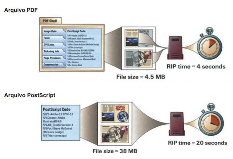 É possível criar um documento PS de todos os aplicativos utilizados em editoração eletrônica, sendo necessária apenas a instalação de uma impressora virtual com as características do software RIP (que fará posteriormente a rasterização e separação das cores do PDF). As características dos RIPs estão contidas em um arquivo conhecido como PPD (Printer Page Description). Cada aplicativo gera PS de acordo com suas características estruturais, porém, todos devem seguir um padrão que garanta as condições básicas de processamento do PDF. Os quesitos fundamentais são: