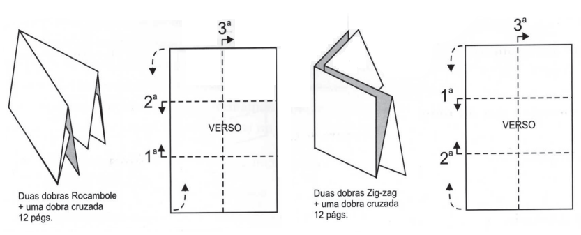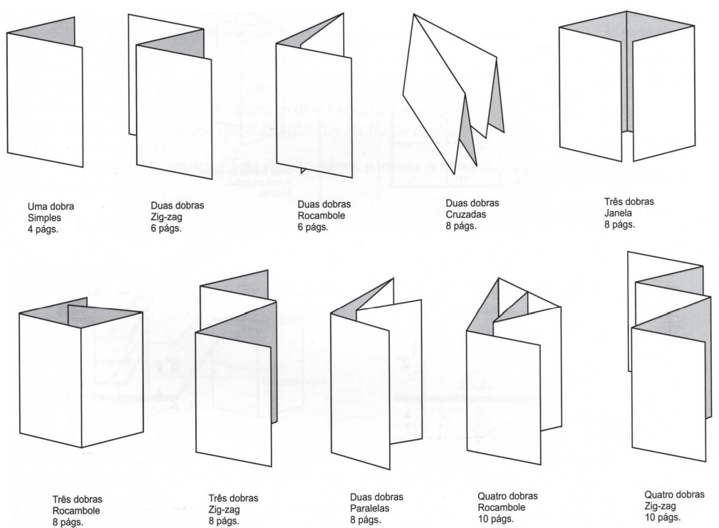 Confira com a gráfica a gramatura do papel a ser dobrado; alguns dos tipos de dobra não são possíveis para papéis de gramaturas superiores a 150 gr/m2. Cuidado com dobras em impressos com verniz U.V., pois o verniz quebra na dobra. A quebra é mais aparente em impressos de cores escuras.