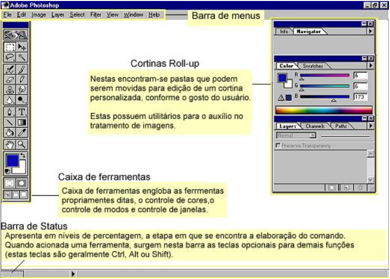 O Paint Shop Pro 5.0 e o Adobe Photoshop 5.0 são softwares para edição, retoques e aplicações de efeitos em imagens gráficas, que são fotos e desenhos inseridos em publicações, como por exemplo: revistas, jornais, livros, panfletos, home-pages, etc.... O Photoshop 5.0 é um programa grande e complexo, é o mais usado e preferido pelos especialistas em editoração e computação gráfica para linha PC. Outros programas da mesma categoria usados no mercado são o Paint Shop Pro 5.0 e o Corel PhotoPaint e outros. Estes dois softwares possuem vários recursos a serem dados, mas infelizmente não cabe aqui explicar todos eles. A idéia do treinamento é passar para vocês como fazer alguns títulos, botões, banner para ilustrar uma home page.