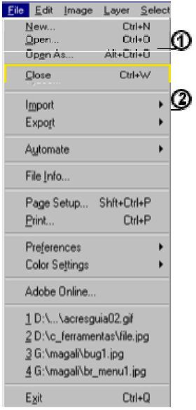 Close- fecha o arq. que estiver ativo, sem encerrar o aplicativo. Se houverem modificações que não foram salvas, abre-se a opção de salvá-las antes de fechá-lo;