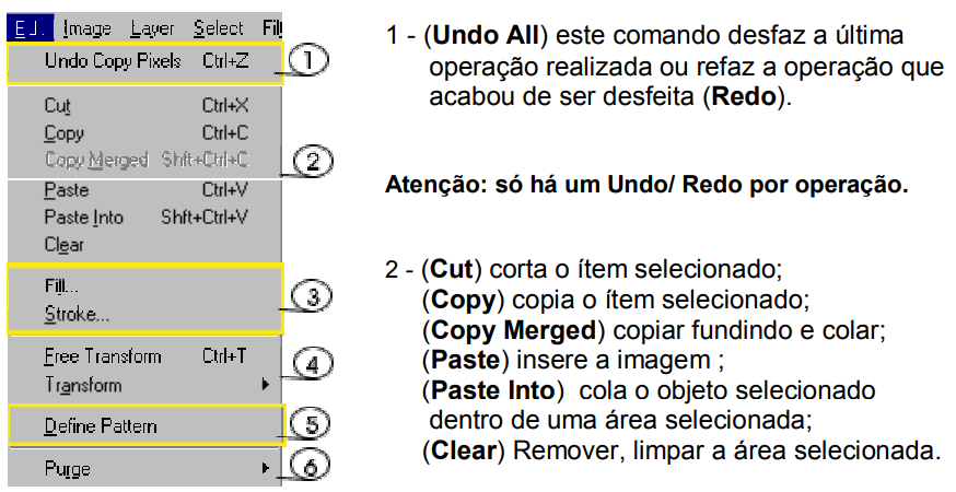 Neste menu, estão os comandos que permitem a edição da imagem.