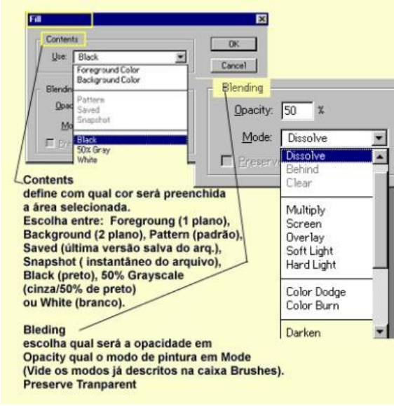 3 - (Fill) Preenche a área selecionada com a cor, opacidade e modo escolhido.