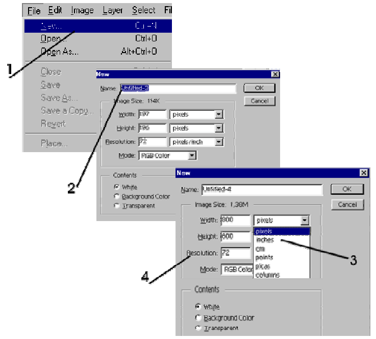 Cada imagem que você cria, inicia com um arquivo novo. Ao criar o arquivo novo, você especifica suas dimensões, resolução e modo de cor, dependendo do destino final do arquivo.
