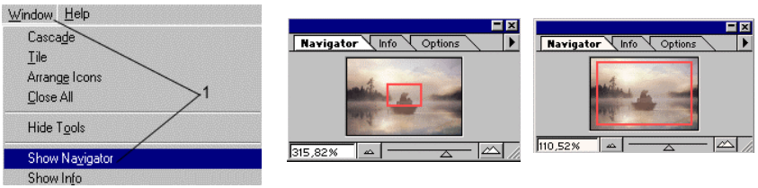 A palheta Navegator é uma maneira prática de navegar rapidamente em uma imagem grande e ampliar ou reduzir partes da imagem, mantendo a visão de onde se está em relação à imagem completa.