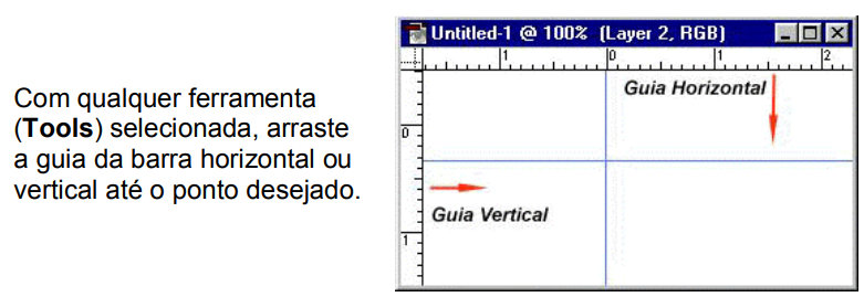 As réguas e guias não são impressas e não aparecem na tela se não visualizarmos uma imagem em qualquer programa diferente do Photoshop. Para alterar as unidades da régua, dê um clique duplo na régua e escolha uma opção diferente no menu instantâneo Units na caixa de diálogo Units & Rulers Preferences.