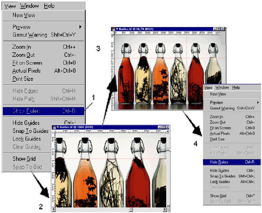4 - Escolha a opção View, Hide Rulers ou pressione Ctrl + R novamente para ocultar as réguas.